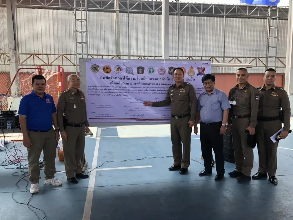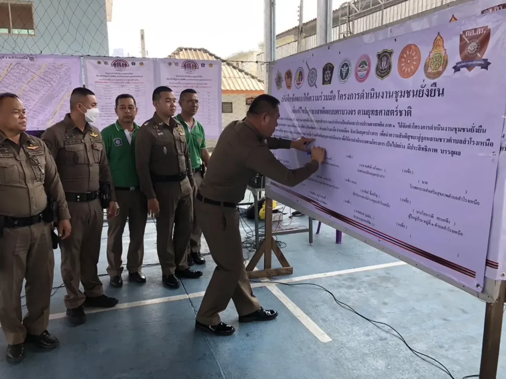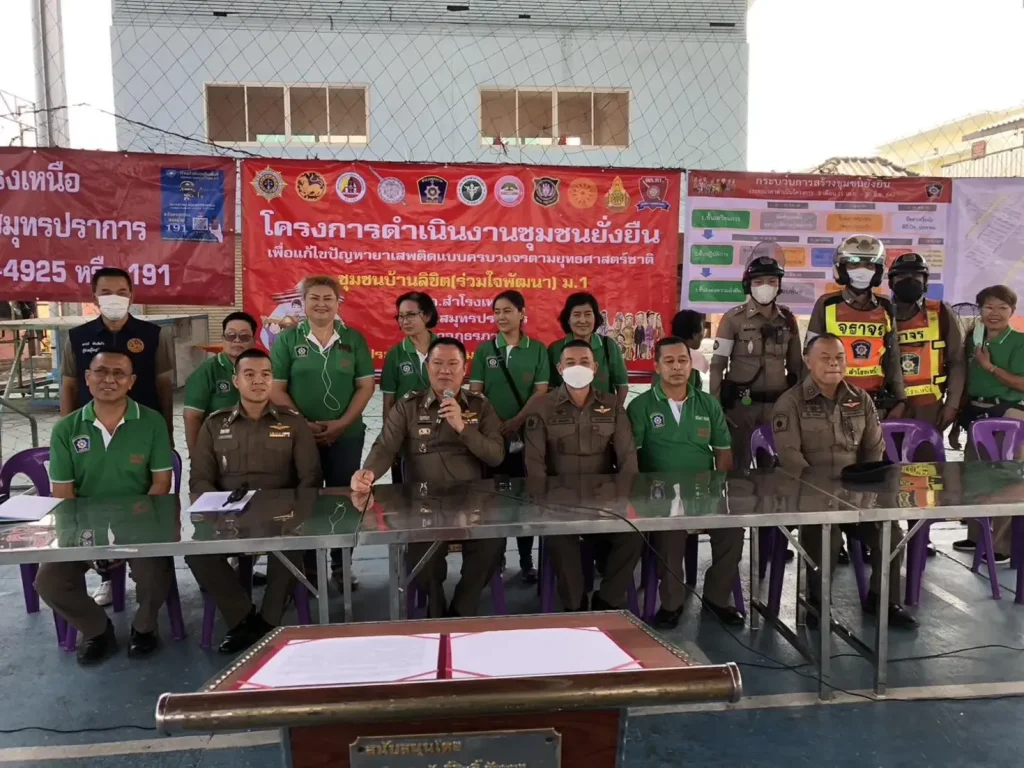 พร้อมข้าราชการตำรวจ ชุดปฏิบัติการชุมชนยั่งยืน และชุดปฏิบัติการสืบสภาพชุมชน/พบปะแกนนำ และหัวหน้าคุ้ม 5 คุ้ม จำนวน 30 นาย ประชาชนชุมชนบ้านลิขิต(ร่วมใจพัฒนา) ร่วมพิธีเปิดโครงการดำเนินงานชุมชนยั่งยืนเพื่อแก้ไขปัญหายาเสพติดแบบครบวงจรตามยุทธศาสตร์ชาติ ปีงบประมาณ 2566