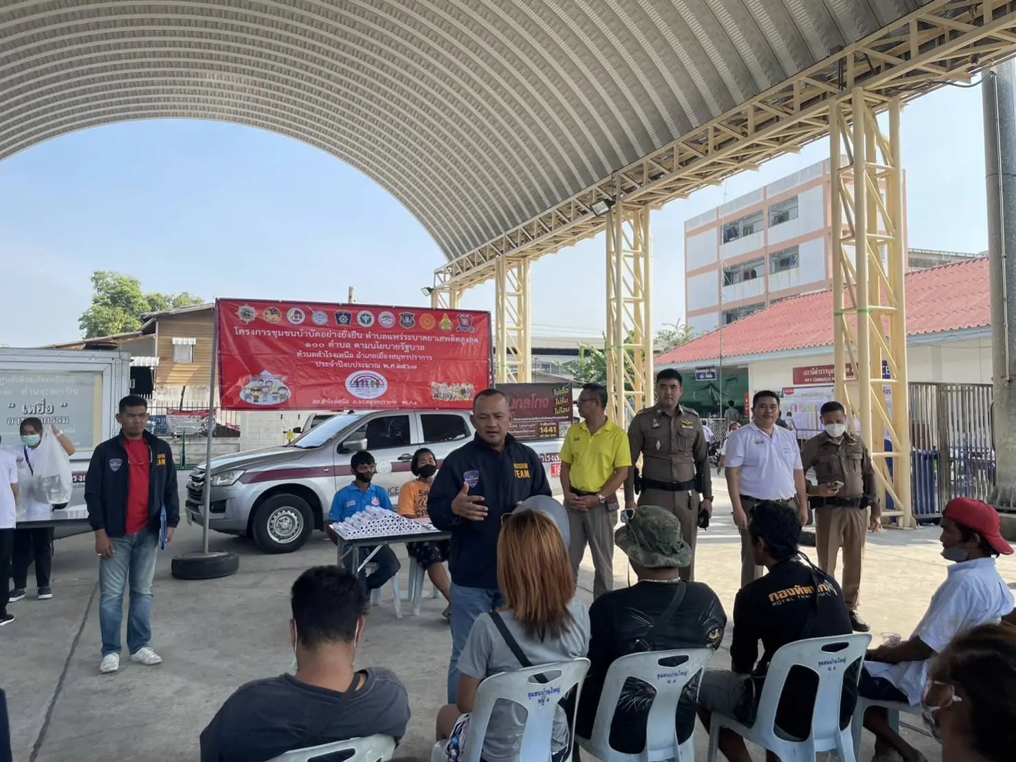 พร้อมด้วยข้าราชการตำรวจ ชุดชุมชนสัมพันธ์ สภ.สำโรงเหนือ ตรวจคัดกรองผู้เสพยาเสพติด และเข้ากระบวนการบำบัด CBTx บรรยายให้ความรู้เกี่ยวกับเรื่องยาเสพติด พร้อมทั้งได้มอบข้าวสารอาหารแห้ง ให้แก่ผู้เข้ารับการบำบัด นำไปดำรงชีวิตประจำวัน ตามโครงการตำบลยั่งยืน ในตำบลแพร่ระบาดยาเสพติด สูงสุด 100 ตำบล ตามนโยบาลเร่งด่วนของรัฐบาล