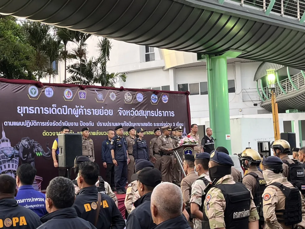 พิธีปล่อยแถวระดมกวาดล้างยาเสพติดยุทธการเด็ดปีกผู้ค้ารายย่อย จังหวัดสมุทรปราการ ครั้งที่ 2/2567