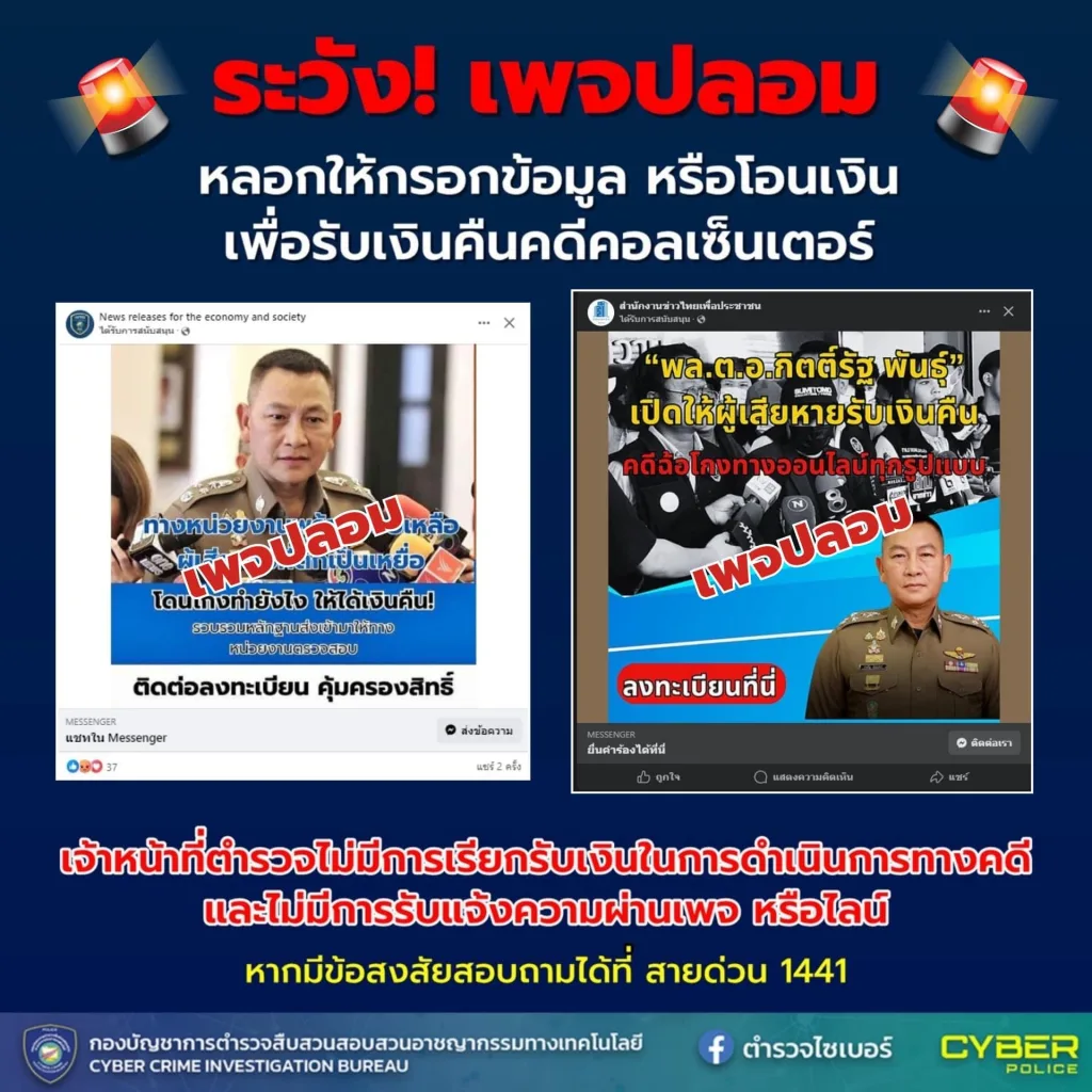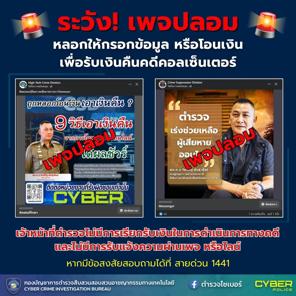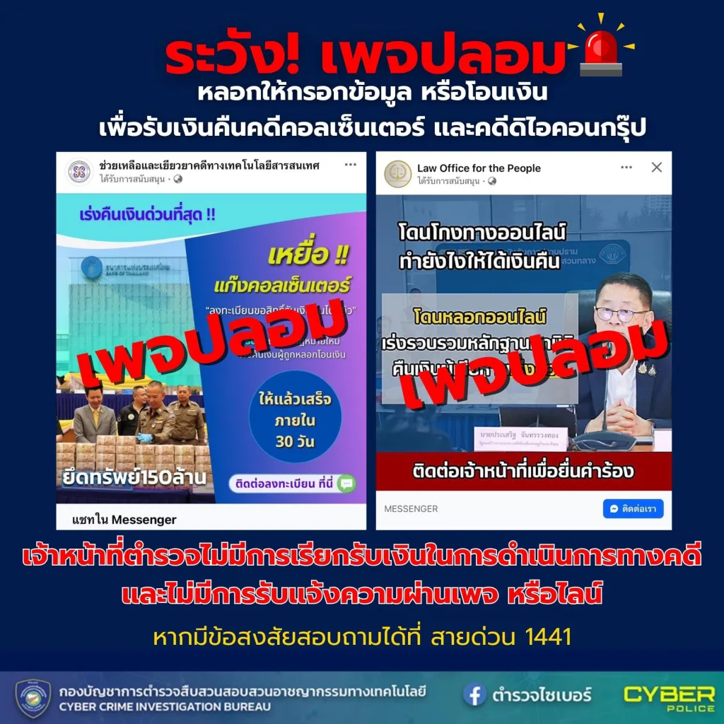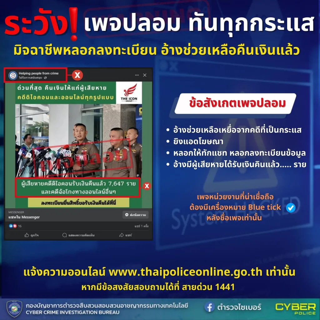 มิจฯ สร้าง #เพจปลอม อ้างช่วยเหลือคดีออนไลน์ ช่วยตามเงินคืน ที่แท้หลอกฉกข้อมูลส่วนตัว ฉกเงินจากบัญชี